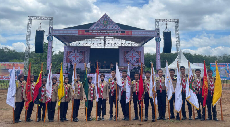 Kisaran (Humas). Sebanyak 17 peserta didik anggota Pramuka MAN Asahan turut memeriahkan pembukaan Pagelaran Seni Budaya Daerah (PSBD) Ke-VI Tahun 2025 Kabupaten Asahan di lapangan PSBD Kelurahan Sei Renggas, Sabtu (4/10/2025). Pada kesempatan ini, ketujuh belas peserta didik MAN Asahan ditugaskan sebagai pembawa bendera merah putih dan bendera 14 etnis budaya di Asahan.