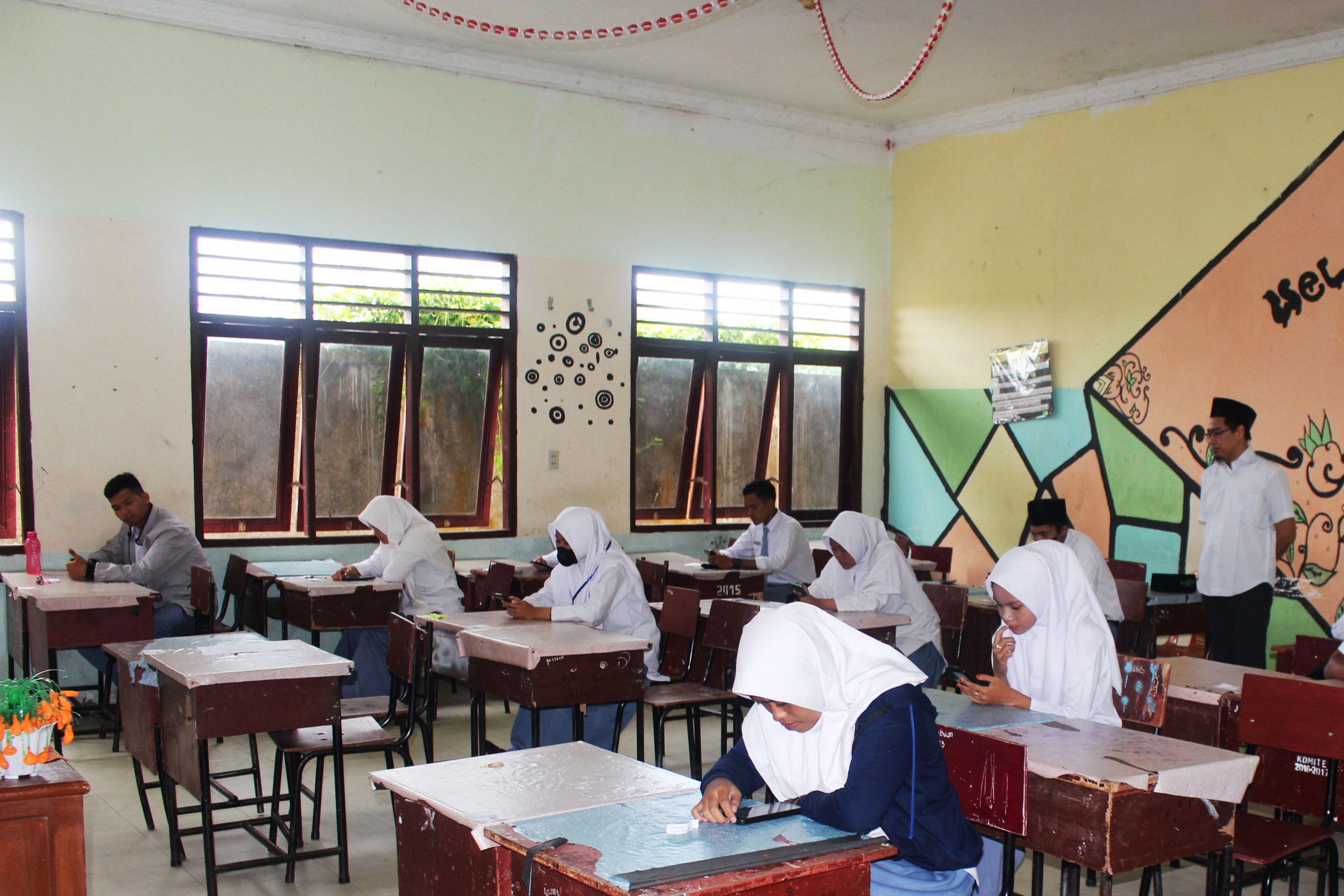 Hari Pertama Ujian Madrasah Berbasis Android Dengan Aplikasi E-Learning TP. 2021/2022 di MAN Asahan Berjalan Sukses