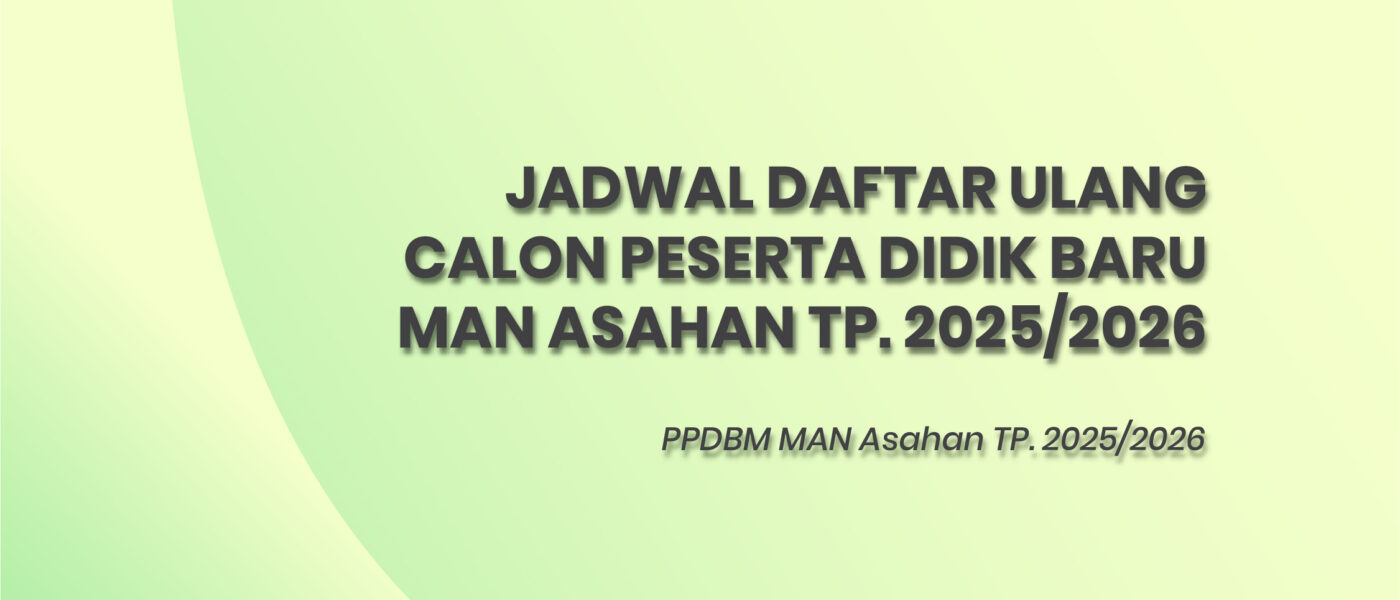 Adapun jadwal Daftar Ulang PPDBM MAN Asahan TP. 2025/2026 sebelumnya adalah tanggal 11 s.d 14 Juni 2025 berubah menjadi tanggal 16 s.d 20 Juni 2025.