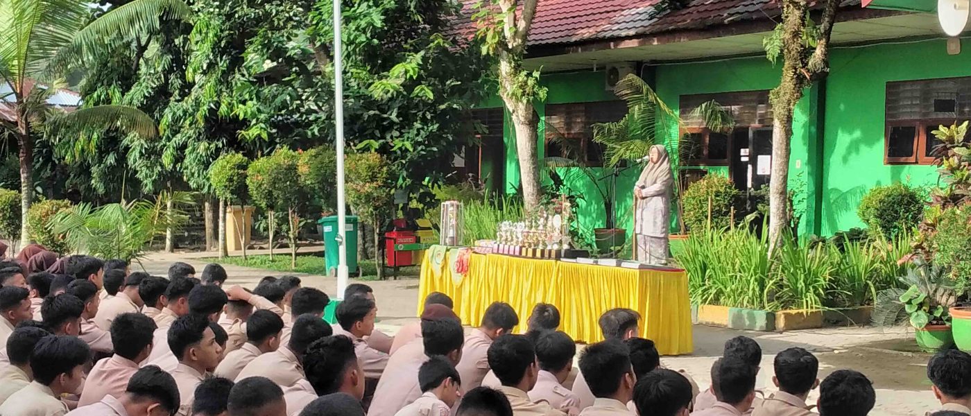 Kepala MAN Asahan Dra. Hj. Elda Ayumi, M.Si pada kegiatan apel pagi pengumuman juara kelas dari hasil pembelajaran Semester Ganjil TP. 2023/2024 di lapangan MAN Asahan, Sabtu (23/12/2023) berkesempatan memberikan arahan dan bimbingannya dengan menyampaikan untuk tetap menjaga diri dan menjaga nama baik madrasah.