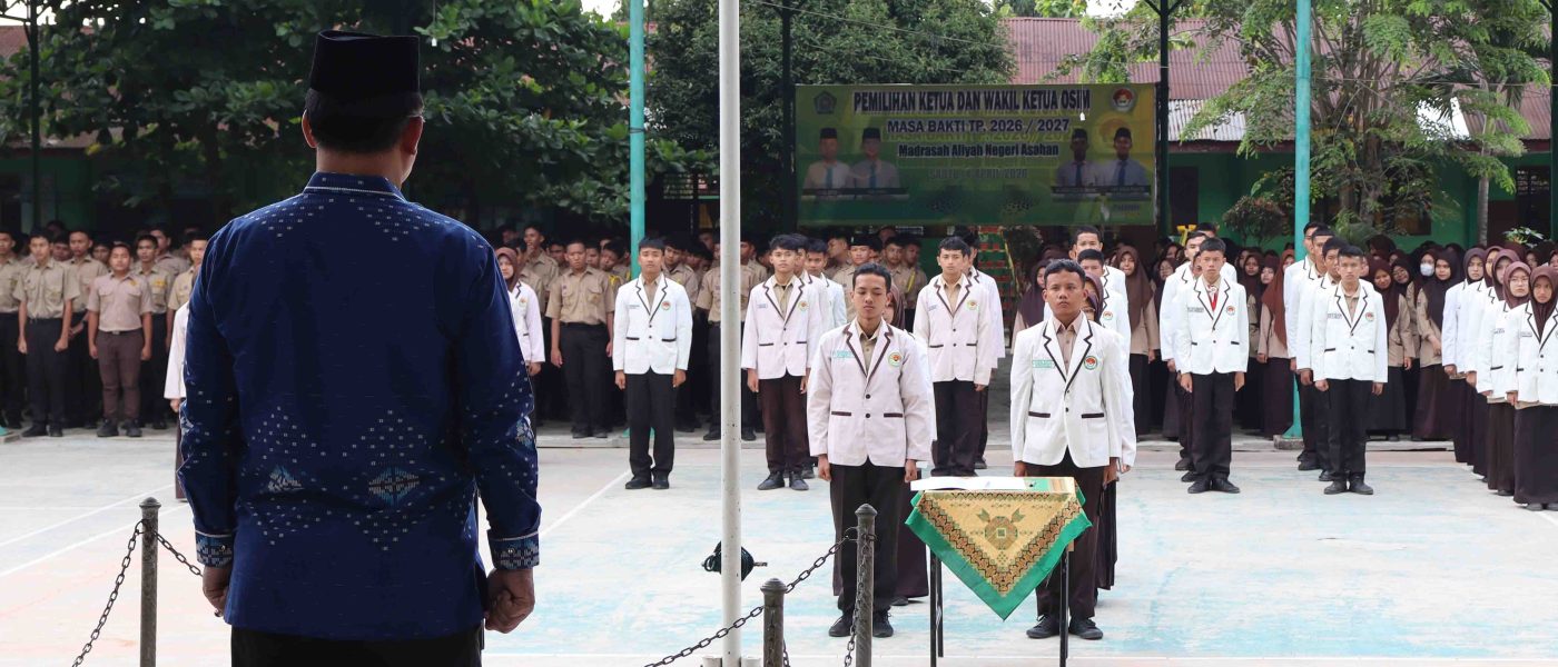 Kisaran (Humas). MAN Asahan menggelar upacara Pelantikan Pengurus Organisasi Siswa Intra Madrasah (OSIM) Masa Bakti 2026/2027 di lapangan MAN Asahan, Jumat (24/04/2026). Kegiatan tersebut berlangsung dengan tertib dan penuh khidmat, dihadiri oleh Kepala Kantor Kementerian Agama Kabupaten Asahan H. Abdul Manan, M.A., didampingi Kepala Seksi Pendidikan Madrasah Dr. Hj. Sri Muchlis, M.I.Kom, serta Kepala MAN Asahan Dra. Hj. Elda Ayumi, M.Si.