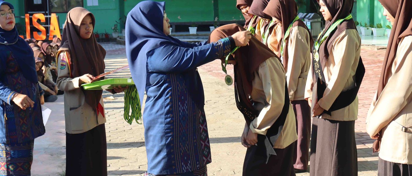 Kisaran (Humas). Kepala MAN Asahan, Dra. Hj. Elda Ayumi, M.Si, memberikan medali dan piagam penghargaan kepada peserta didik yang berhasil menorehkan prestasi di bidang akademik, khususnya pada ajang olimpiade sains secara daring serta sebagai Duta Siswa Kabupaten Asahan. Kegiatan pemberian penghargaan tersebut dilaksanakan di lapangan MAN Asahan, Sabtu (20/12/2025).