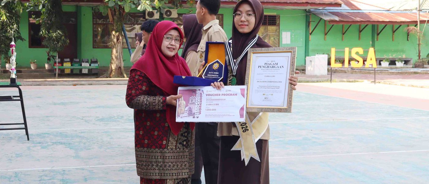 Kisaran (Humas). Kepala MAN Asahan, Dra. Hj. Elda Ayumi, M.Si, memberikan apresiasi kepada salah satu peserta didiknya, Zahra Lubis, yang berhasil terpilih sebagai Finalis Duta Siswa Indonesia Tahun 2026. Ajang nasional tersebut diselenggarakan oleh Yayasan Lingkar Inspirasi Bangsa dan berlangsung di Surabaya pada 29 Januari hingga 2 Februari 2026.