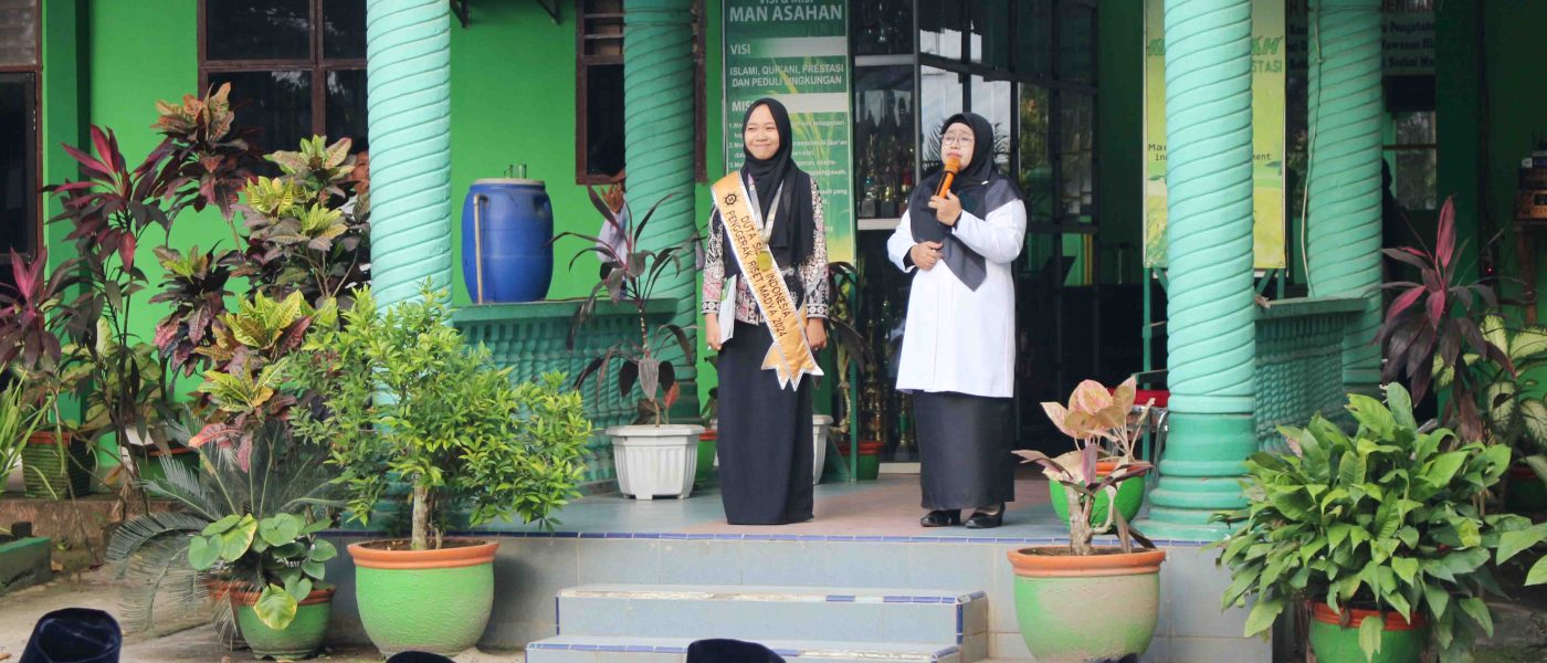 Kisaran (Humas). Kepala MAN Asahan Dra. Hj. Elda Ayumi, M.Si menyambut peserta didiknya yang terpilih menjadi Duta Siswa Indonesia Penggerak Riset Madya 2024 pada Grand Final Duta Siswa Indonesia 2024 yakni Khairun Niza. Penyambutan tersebut dilakukan setelah kegiatan apel pagi di lapangan MAN Asahan, Selasa (23/1/2024).