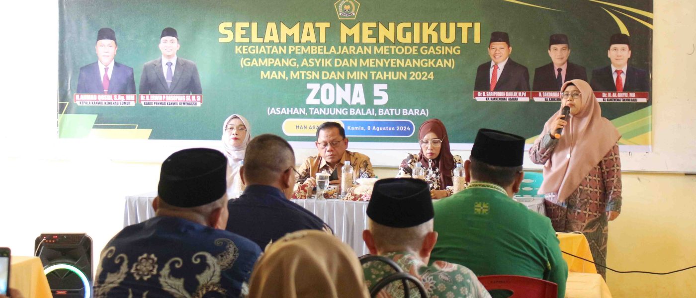 Kegiatan Pembelajaran Metode Gasing Zona 5 untuk Kabupaten/Kota Asahan, Batubara dan Tanjungbalai ini buka secara resmi oleh Kepala Kantor Kementerian Agama Kabupaten Asahan Dr. H. Saripuddin Daulay, M.Pd dengan harapan bahwa kegiatan tersebut dapat lebih bermanfaat bagi tenaga pendidik dan dapat meningkatkan standar pembelajaran untuk meraih prestasi.