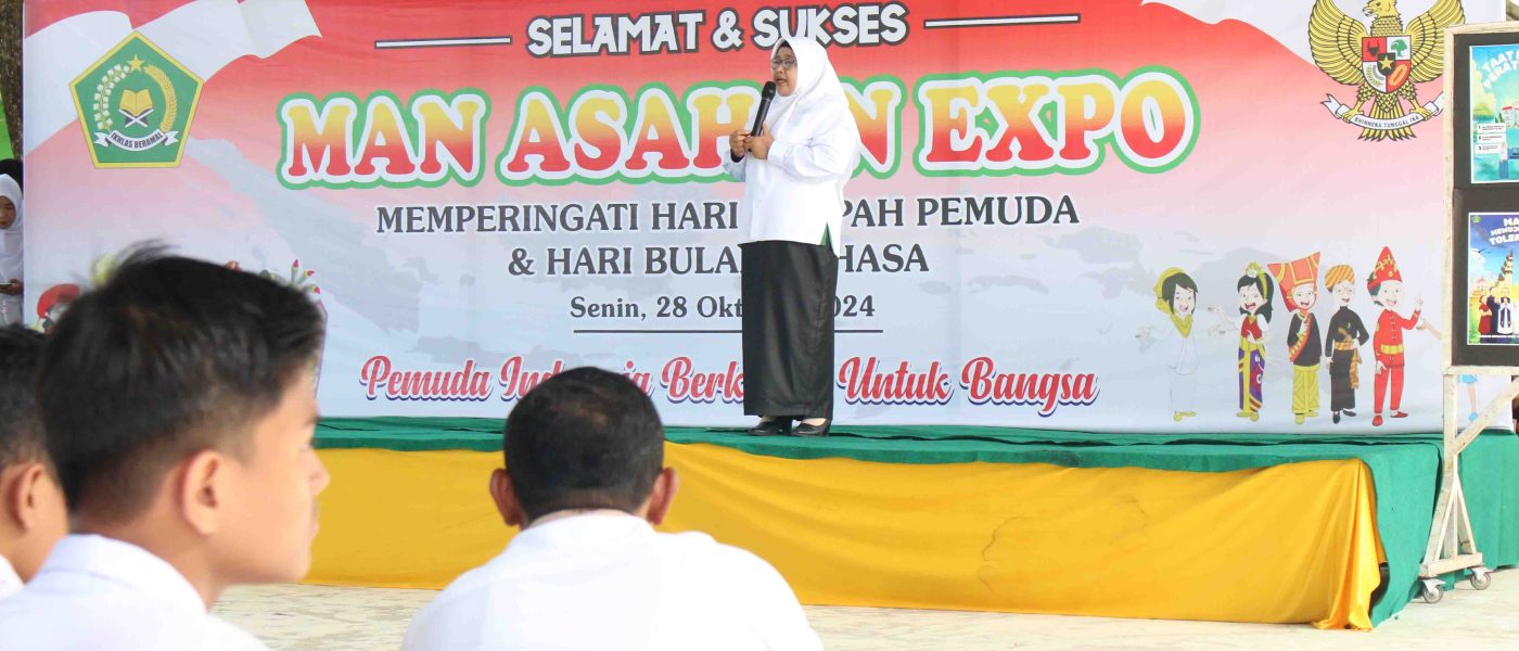 Kisaran (Humas). Dalam rangka memperingati Hari Sumpah Pemuda dan Hari Bulan Bahasa Tahun 2024, Madrasah Aliyah Negeri (MAN) Asahan menggelar Expo dengan serangkaian kegiatan menarik untuk menunjukkan bakat kreasi yang produktif dan kreatif dari para peserta didik. Kegiatan ini dilaksanakan di aula terbuka MAN Asahan selepas pelaksanaan upacara bendera Hari Sumpah Pemuda, Senin (28/10/2024).