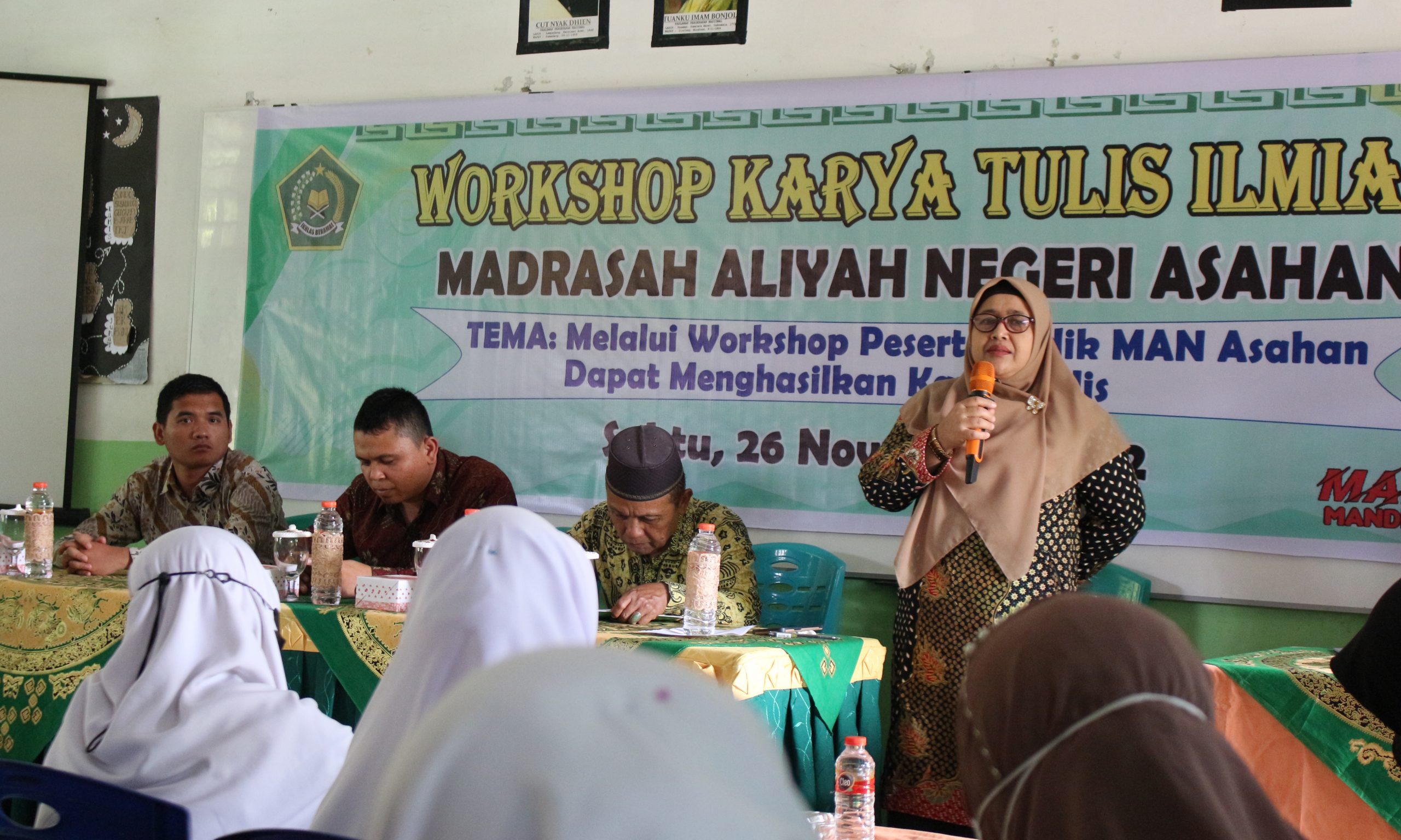 Kepala MAN Asahan Dra. Hj. Elda Ayumi, M.Si dalam sambutannya mengatakan bahwa Kegiatan Workshop Karya Tulis Ilmiah ini sengaja dilaksanakan untuk memfasilitasi peserta didik MAN Asahan yang memiliki minat dalam bidang literasi untuk melatih keterampilan dan kecakapan dalam menulis karya ilmiah dan kegiatan ini diikuti 60 peserta didik yang berminat dalam bidang literasi.