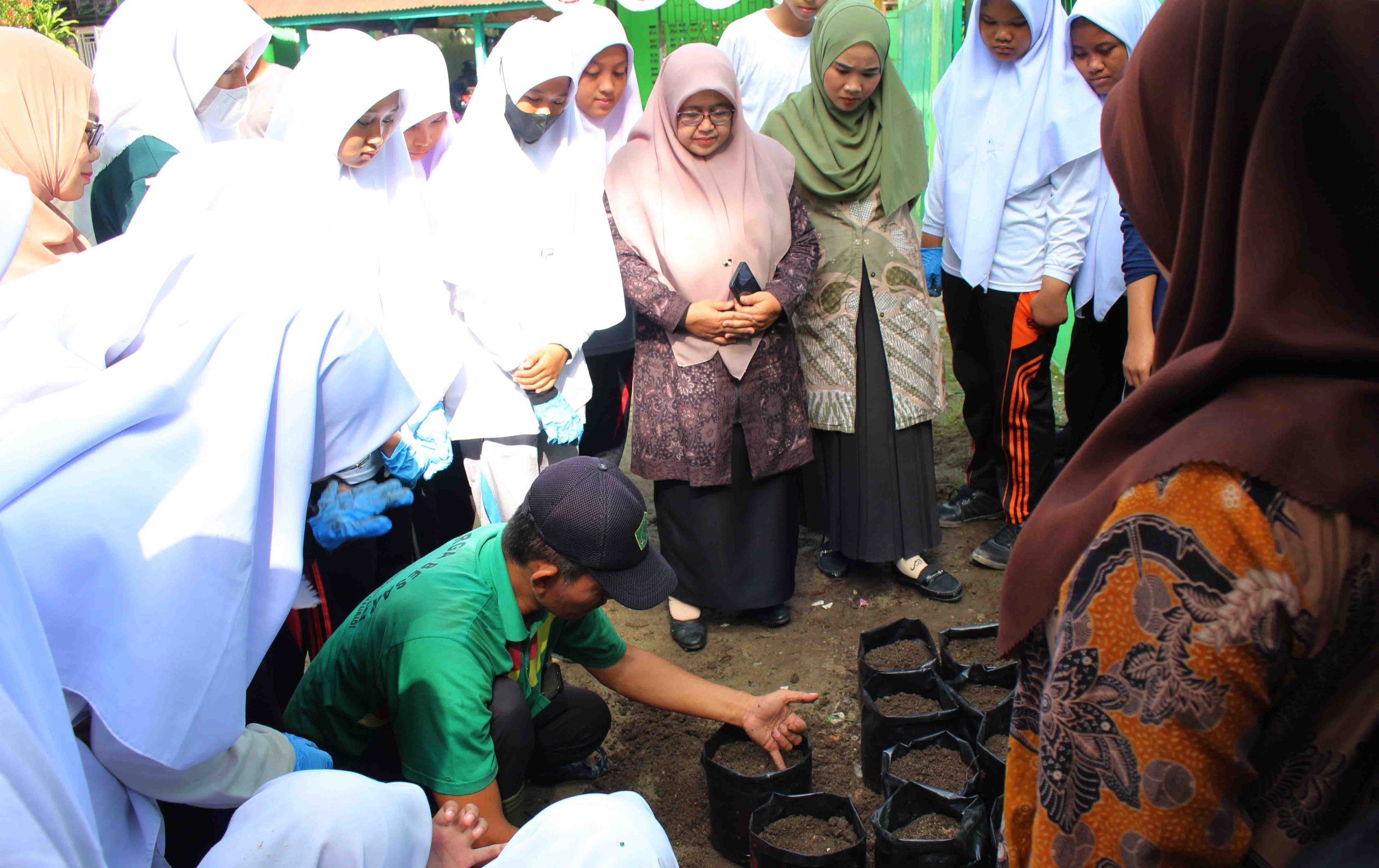 “Salah satu wujud pelaksanaan Kurikulum Merdeka adalah kegiatan P5-P2RA dan tema pertama adalah kewirausahaan menanam kangkung, yang saat ini sedang dilaksanakan proses penanaman kangkung ke dalam polibet atau media barang bekas dengan memanfaatkan area di sekitar lingkungan madrasah”, ujar Elda Ayumi usai meninjau proses penanaman.