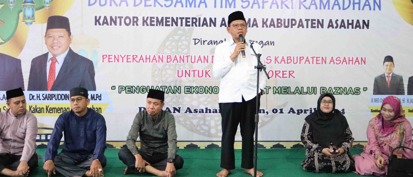 “Selamat datang kepada Bapak/Ibu Tim Safari Ramadhan Kantor Kemenag Asahan beserta para tamu undangan yang hadir, kami merasa tersanjung telah dipilih menjadi tempat penutupan dari rangkaian kegiatan-kegiatan Safari Ramadhan Kantor Kemenag Asahan. Kami mohon maaf bila ada hal-hal yang kurang berkenan baik itu sarana dan prasarana ataupun nanti ada hidangan berbuka puasa yang kurang pas, kami mohon dimaklumi dan dimaafkan”, tutur Elda Ayumi.