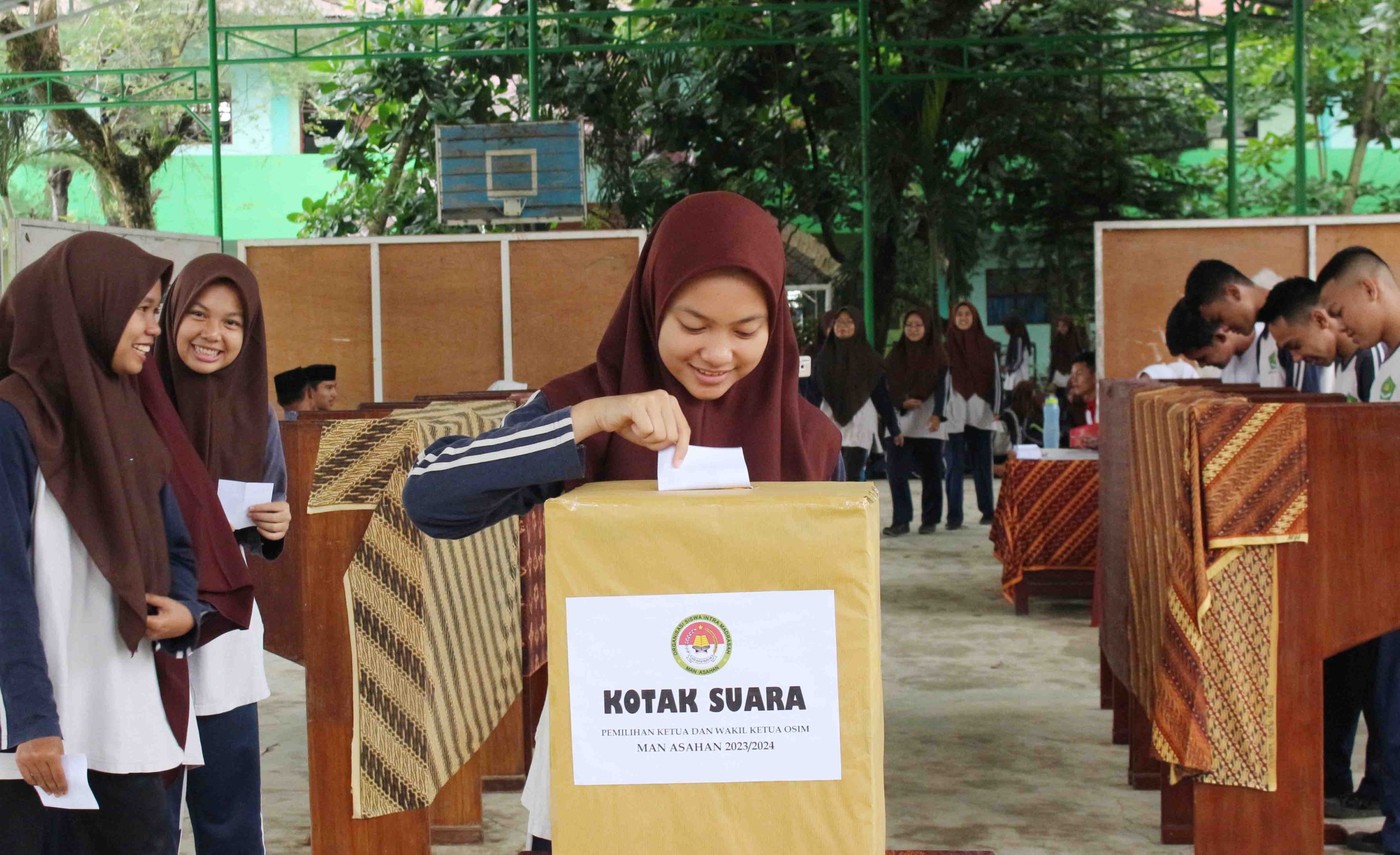 Layaknya pemilu, peserta didik MAN Asahan secara bergantian sesuai urutan kelasnya memasuki tempat pemungutan suara untuk memberikan suaranya melalui surat suara dengan gambar 2 (dua) pasangan calon Ketua dan Wakil Ketua OSIM MAN Asahan Masa Bakti 2023-2024 yaitu M. Rifqi Al Faridzi dan M. Alif Ramadhan (pasangan calon Ketua dan Wakil Ketua OSIM nomor urut 1), Haviv Rezyaska Manurung dan Angga Wardana Sirait (pasangan calon Ketua dan Wakil Ketua OSIM nomor urut 2) yang diberikan oleh panitia Pemilihan Ketua dan Wakil Ketua OSIM MAN Asahan.
