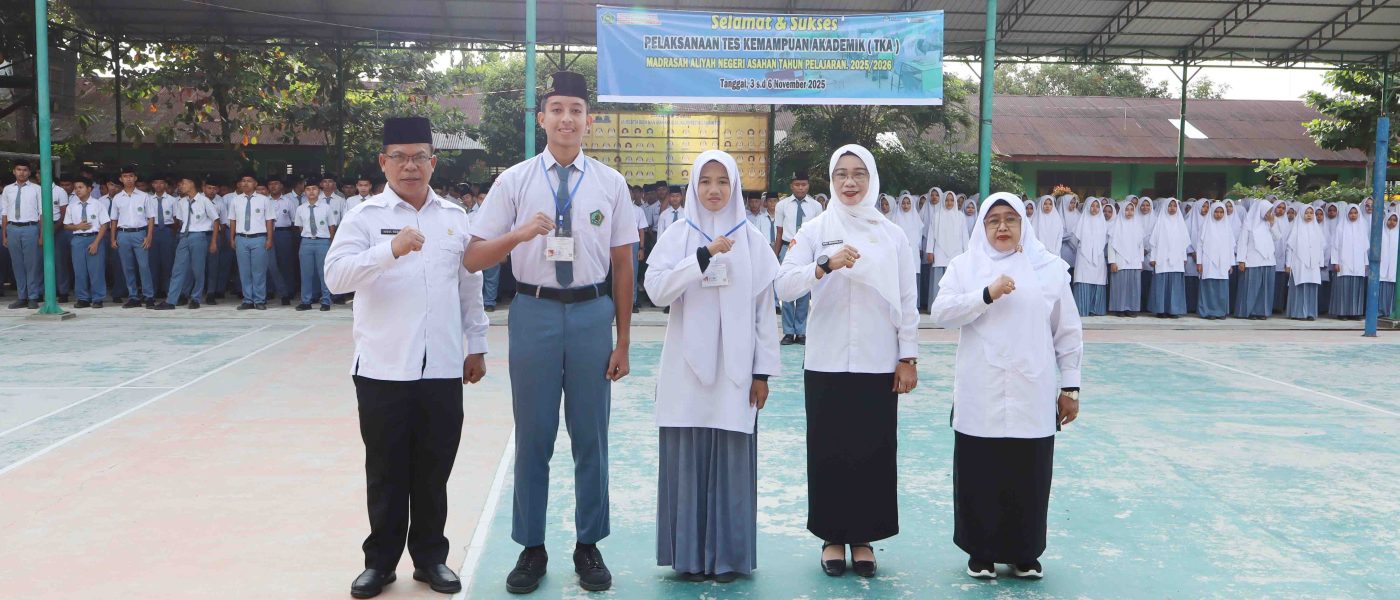 Kisaran (Humas). Dimulai hari ini, seluruh peserta didik kelas XII MAN Asahan mengikuti pelaksanaan Tes Kemampuan Akademik (TKA) jenjang SMA/MA sederajat dan pelaksanaan TKA ini dibuka secara resmi oleh Kepala Kantor Kementerian Agama Kabupatan Asahan H. Abdul Manan, MA, ditandai dengan penyematan kartu peserta TKA di lapangan MAN Asahan, Senin (03/11/2025). Turut hadir dalam kegiatan pembukaan tersebut Kepala Seksi Pendidikan Madrasah Dr. Hj. Srie Muchlis, S.Sos, M.I.Kom.