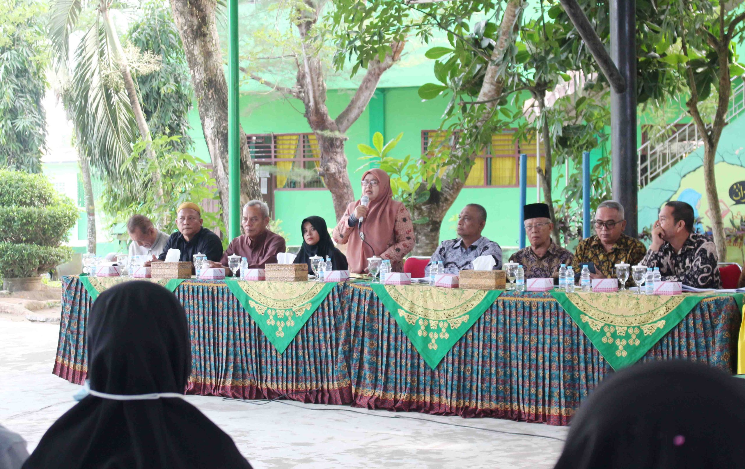 Kisaran (Humas). Kepala MAN Asahan Dra. Hj. Elda Ayumi, M.Si memperkenalkan diri dihadapan para orangtua/wali calon peserta didik baru MAN Asahan pada gelaran rapat orangtua/wali calon peserta didik baru dengan Komite Madrasah di lapangan MAN Asahan, Sabtu (17/06/2023) yang lalu.
