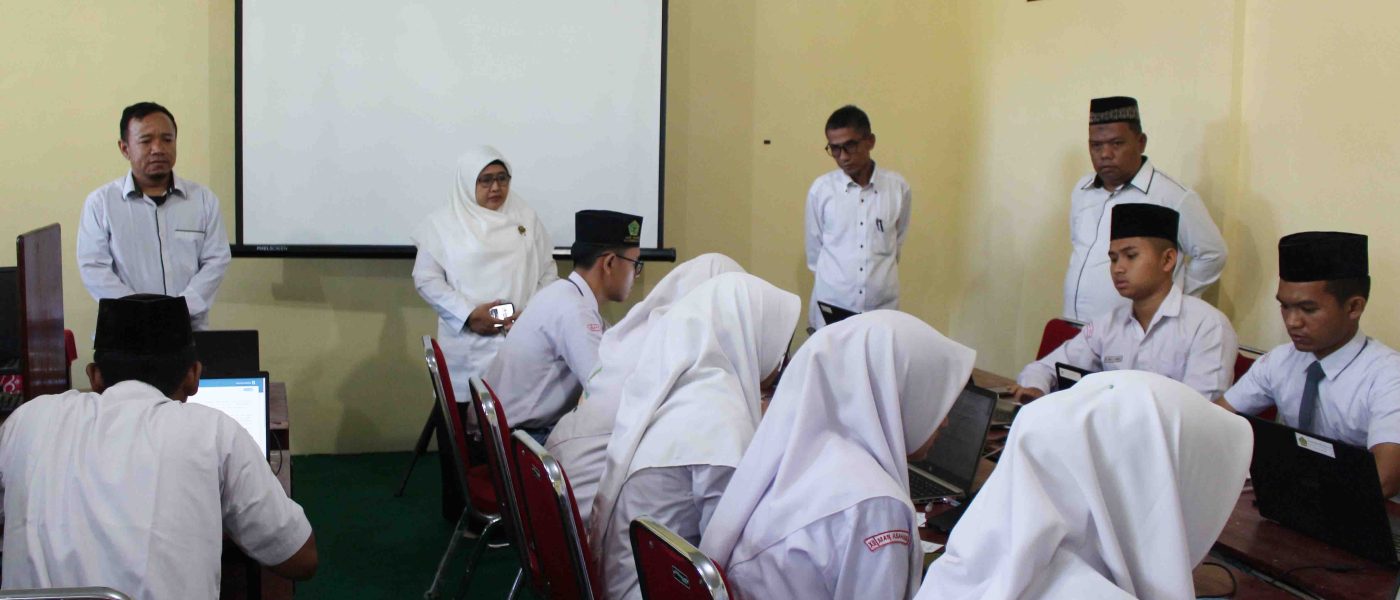 Kepala MAN Asahan Dra. Hj. Elda Ayumi, M.Si didampingi Wakil Kepala Madrasah Bidang Akademik Syahmiruddin Pane, S.Sos, MA dan Wakil Kepala Madrasah Bidang Humas Darman Muliyadi Rambe, S.Ag memantau langsung pelaksanaan hari pertama ABM di ruang laboratorium komputer MAN Asahan, Senin (20/11/2023).