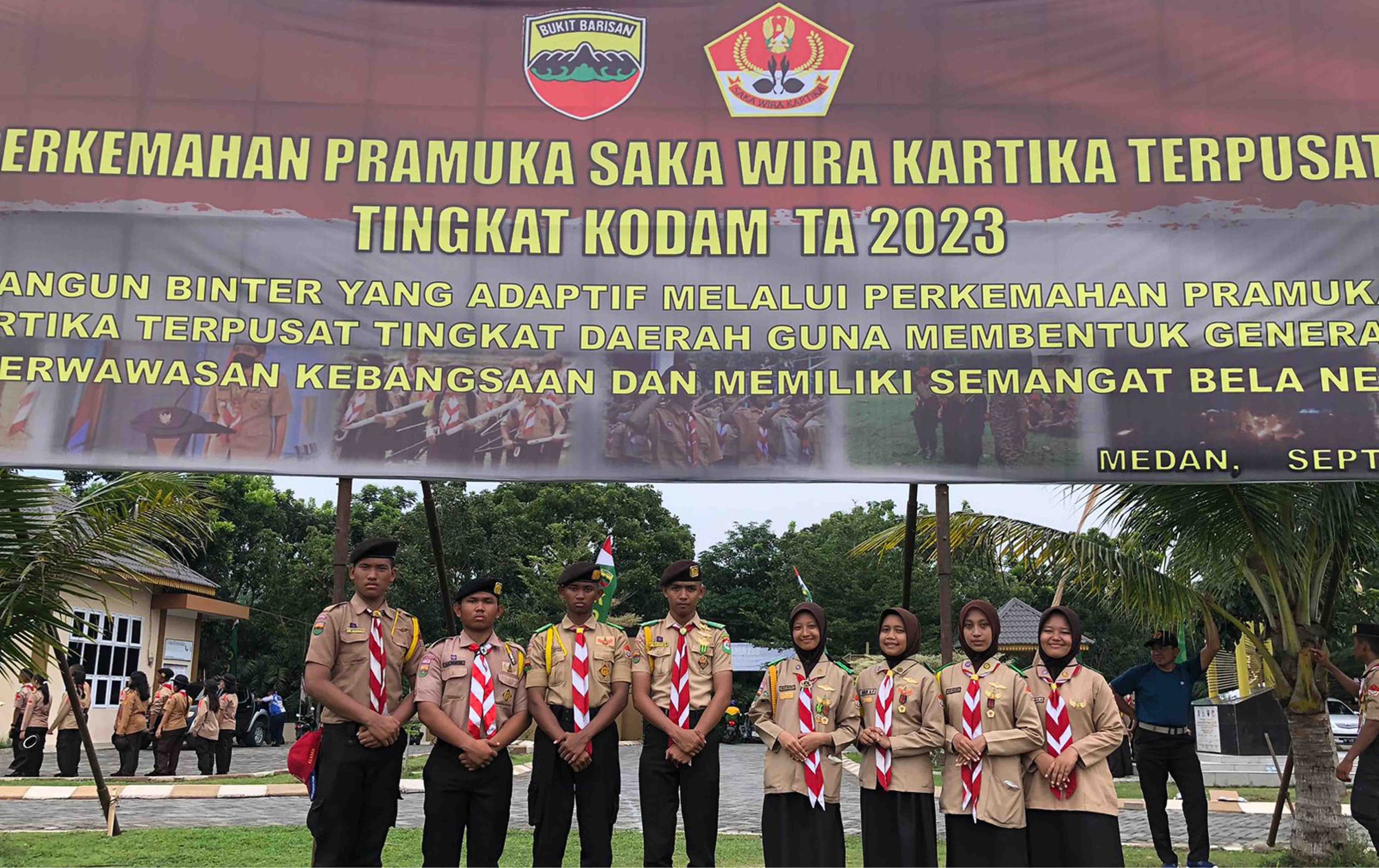 Kisaran (Humas). Pramuka MAN Asahan yang tergabung dalam organisasi Pramuka Saka Wira Kartika Kodim 0208/Asahan mengikuti kegiatan perkemahan Pramuka Saka Wira Kartika Terpusat Tingkat Kodam TA. 2023 di Taman Cadika Pramuka Lubuk Pakam Jalan Tirta Deli, Desa Tanjung Garbus I Kecamatan Lubuk Pakam Kabuapten Deli Serdang selama 3 hari yakni pada tanggal 1 s.d 3 September 2023.