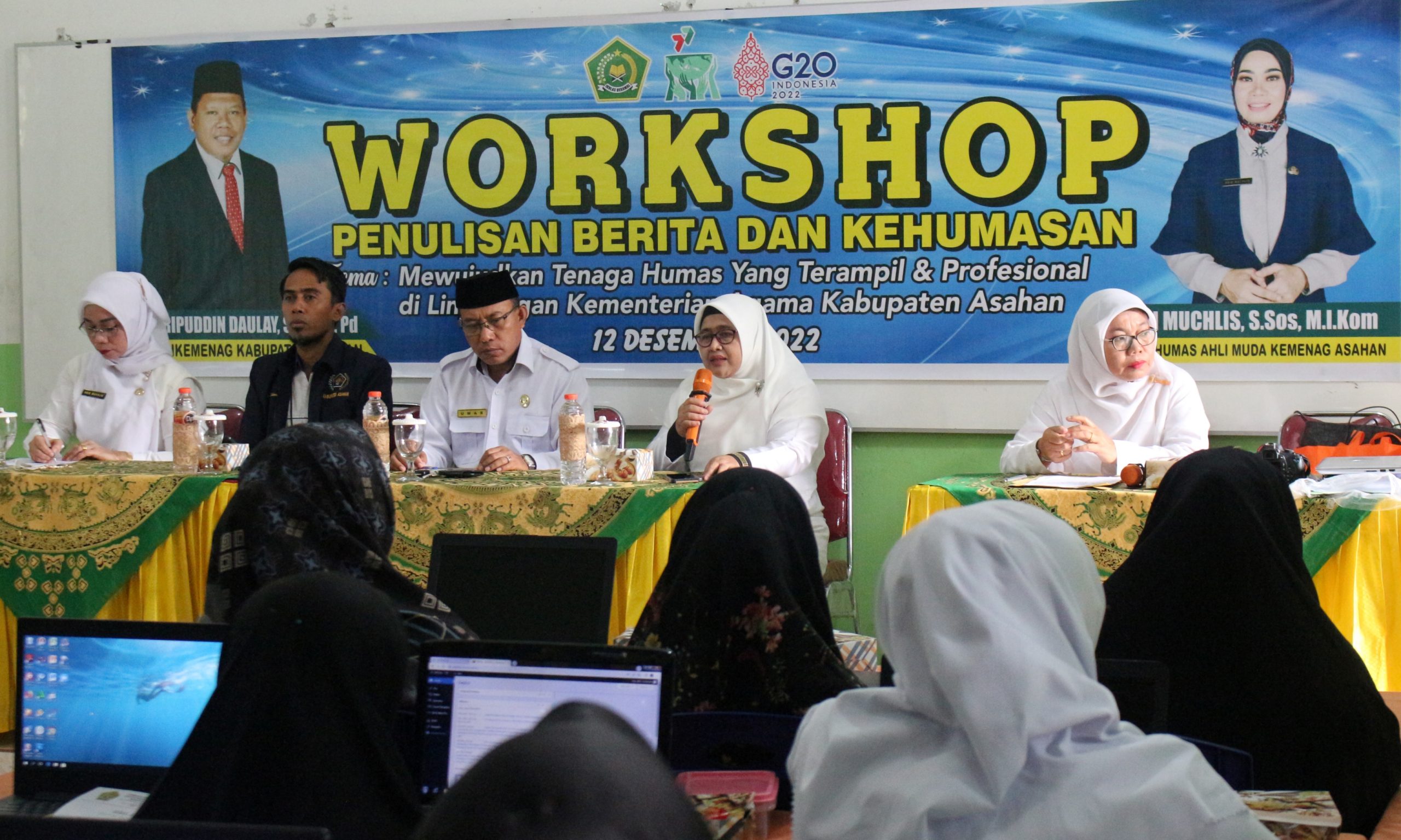 Sebagai narasumber dalam kegiatan Workshop Penulisan Berita dan Kehumasan Kementerian Agama Kabupaten Asahan adalah Ketua PWI (Persatuan Wartawan Indonesia) Kabupaten Asahan Indra Sikoembang, Pranata Humas Ahli Muda Kemenag Asahan Hj. Sri Muchlis, S.Sos, M.I.Kom.