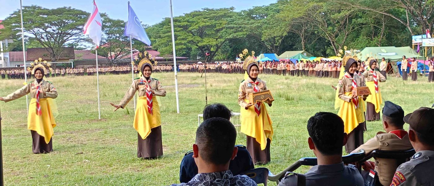 Kisaran (Humas). Enam anggota Pramuka MAN Asahan tampilkan sebuah tari persembahan pada pembukaan kegiatan Perkemahan Pertemuan Pramuka Penggalang dan Penegak (P5) Bersama Kisaran Timur Part II Tahun 2024 dan Peringatan Hari Pramuka ke-63 yang diselenggarakan oleh Gerakan Pramuka Kwartir Ranting Kisaran Timur di lapangan sepakbola Universitas Asahan dari tanggal 10 – 13 Oktober 2024.