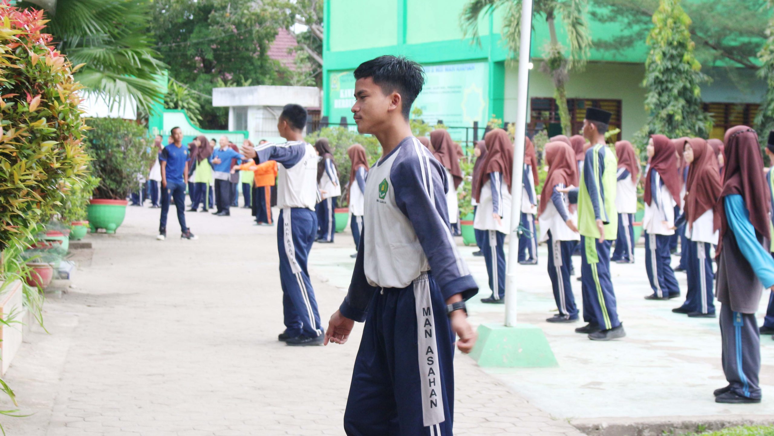 Bertempat di lapangan MAN Asahan, Sabtu (7/01/2023). Kegiatan ini terpantau segenap warga MAN Asahan seperti pendidik, tenaga kependidikan dan peserta didik sangat antusias mengikuti setiap gerakan yang lakukan oleh guru olahraga dan beberapa peserta didik yang memimpin gerakan senam.